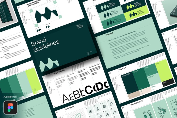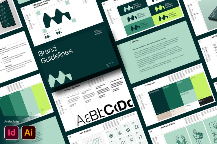 6 best-selling brand guidelines templates — available for InDesign, Illustrator & Figma.