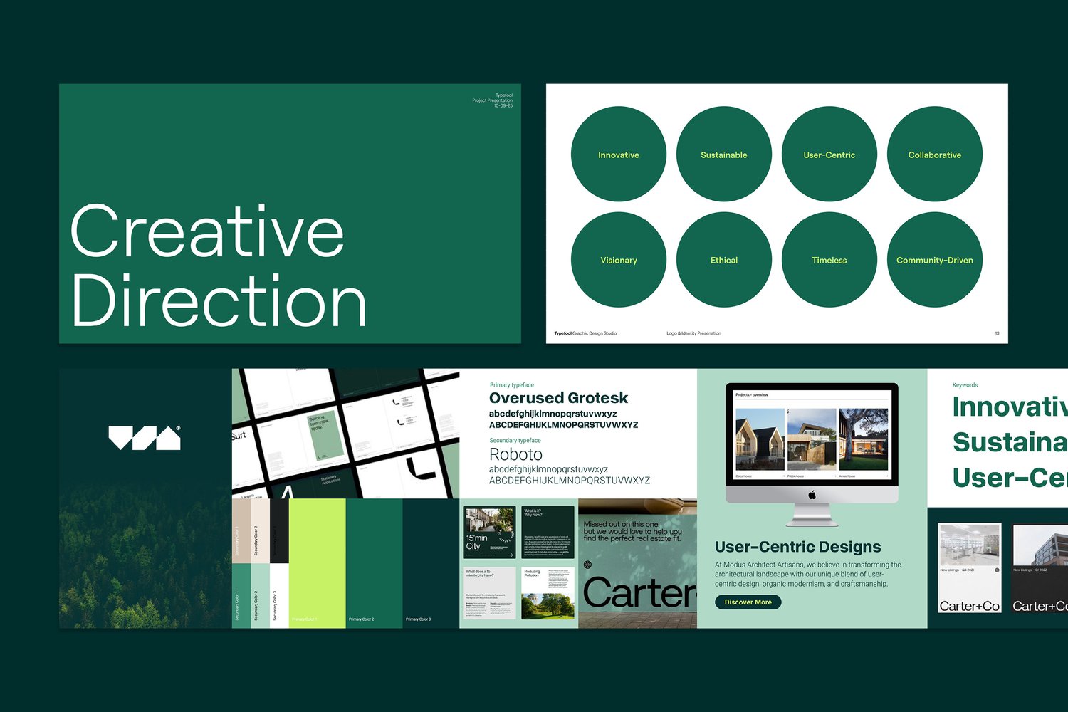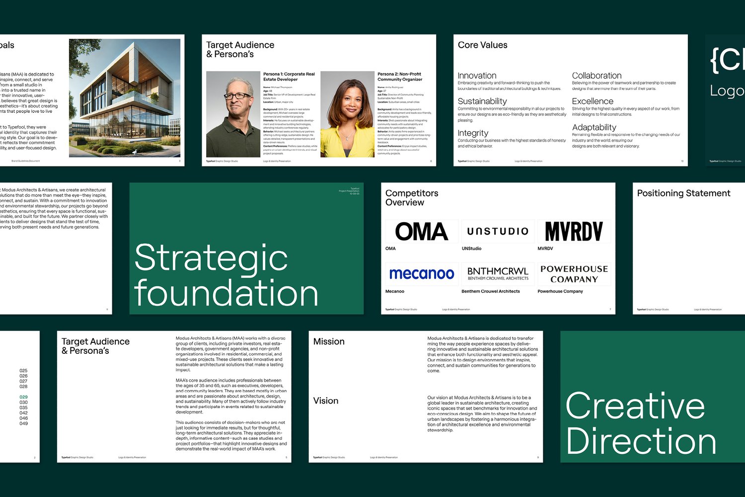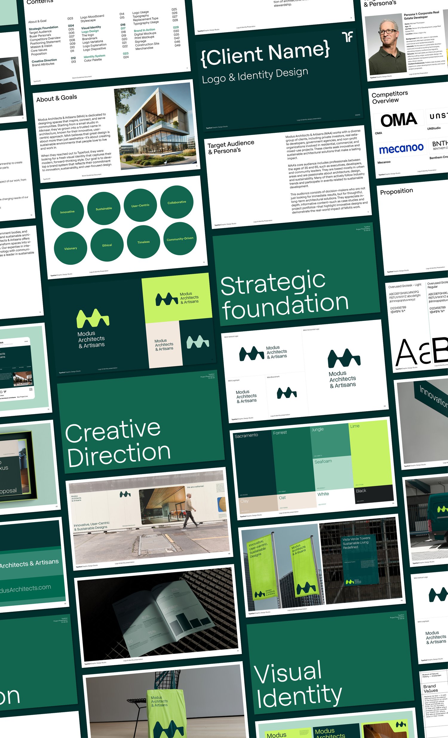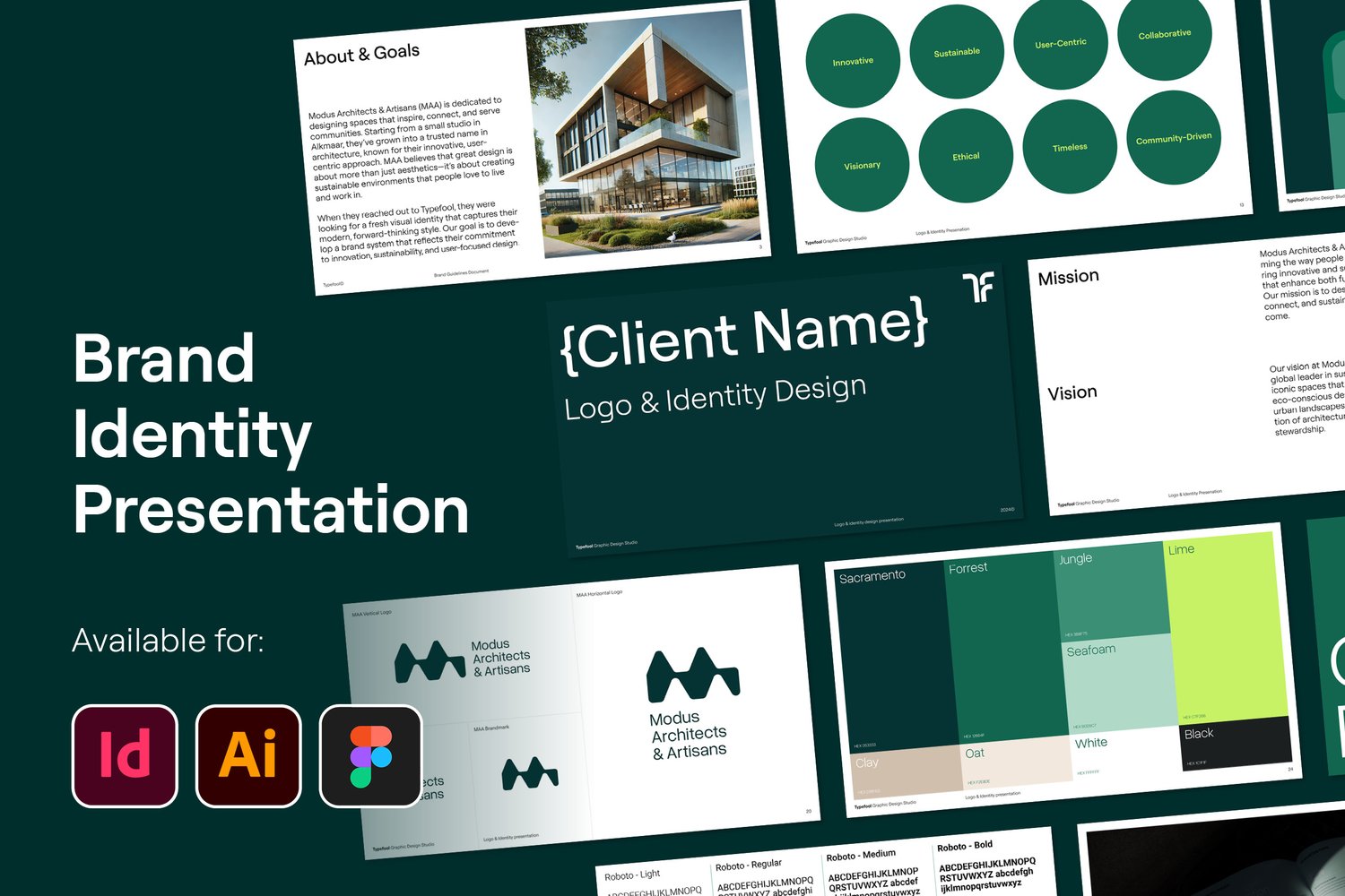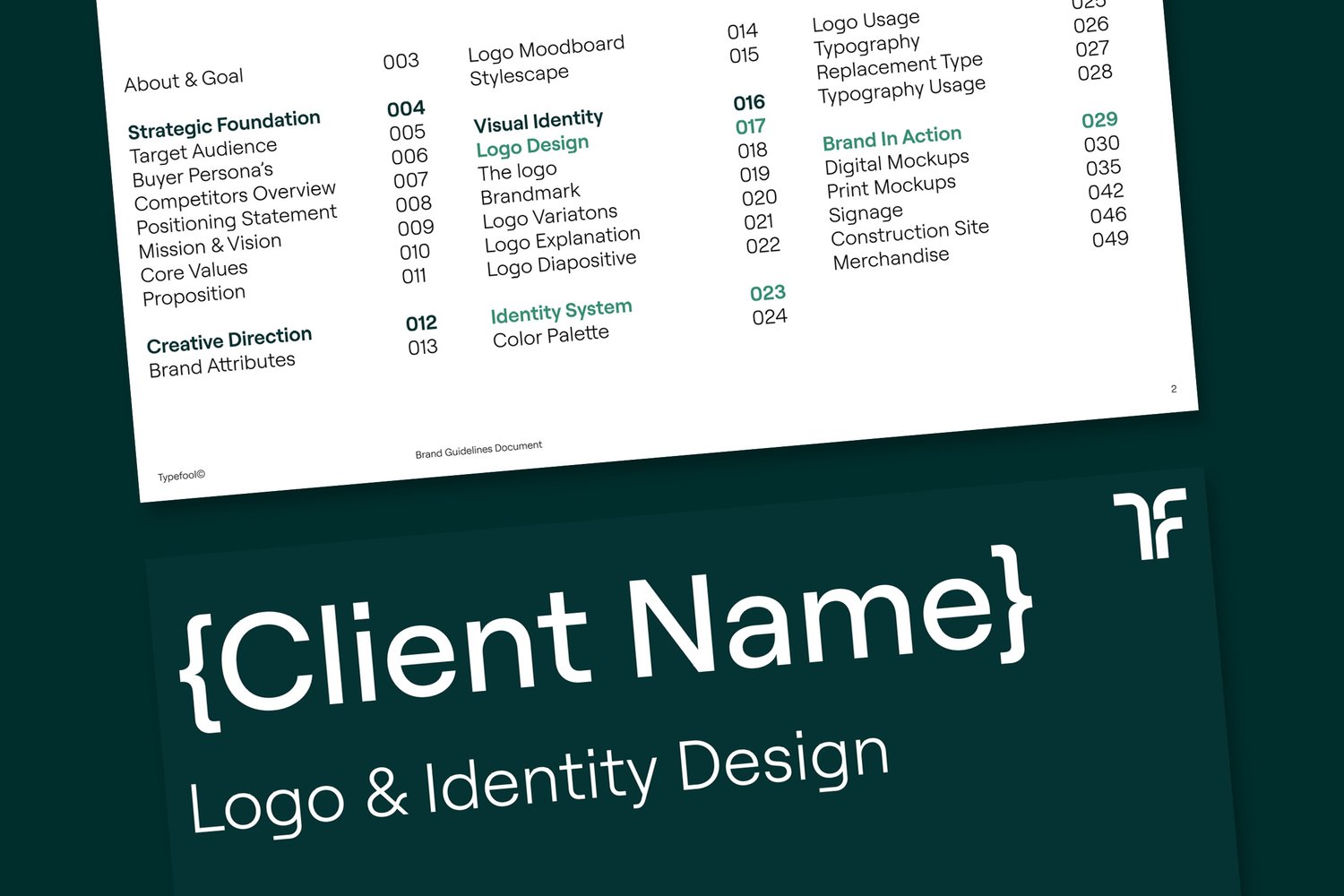 A well-structured presentation that guides your client through every aspect of the brand identity, including: