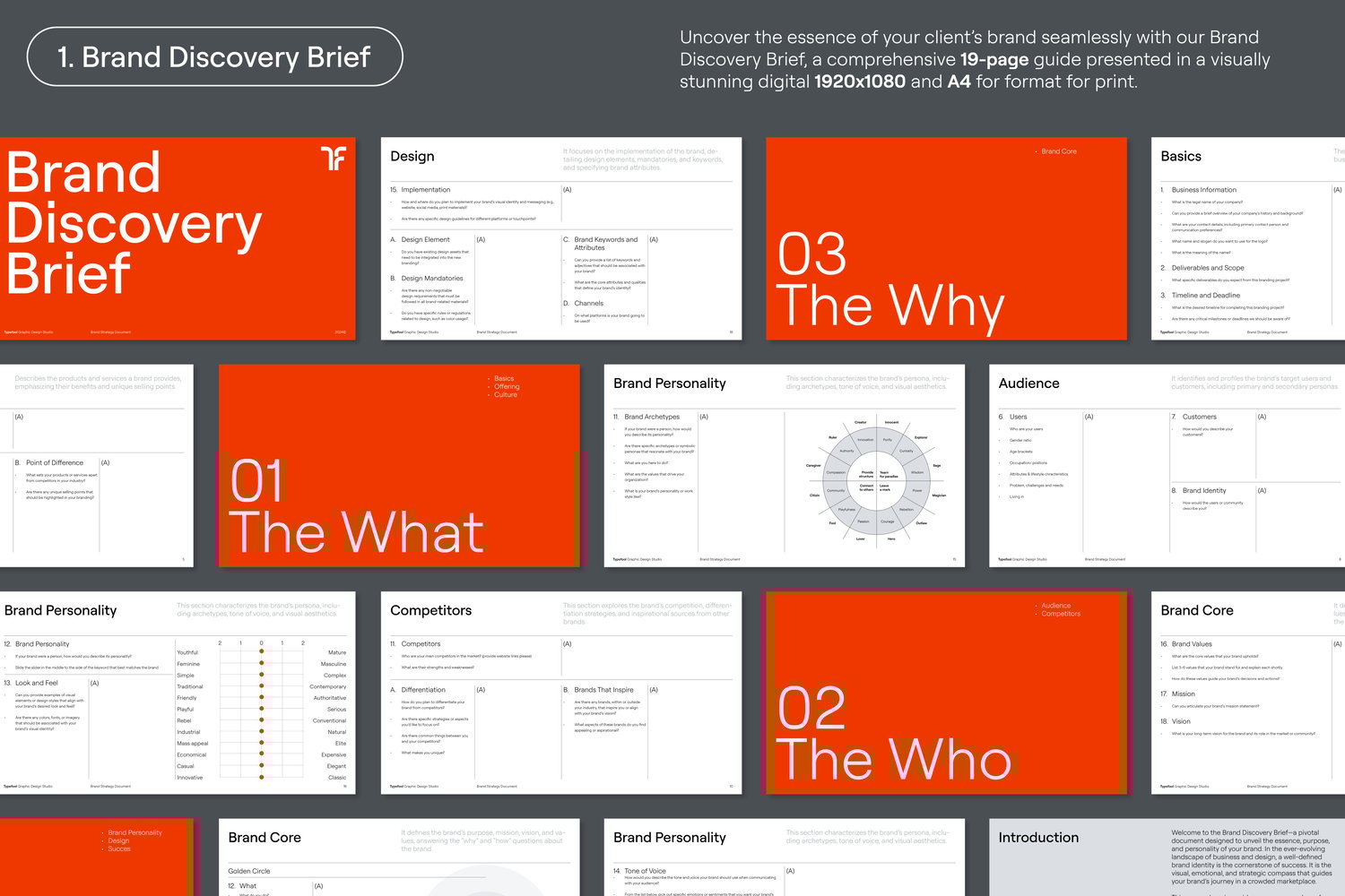 A complete toolkit to confidently lead the discovery and strategy phase of any brand identity project.