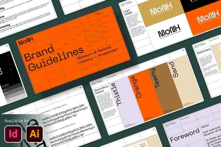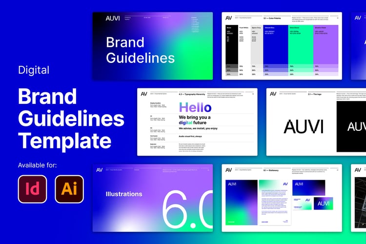 6 best-selling brand guidelines templates — available for InDesign, Illustrator & Figma.